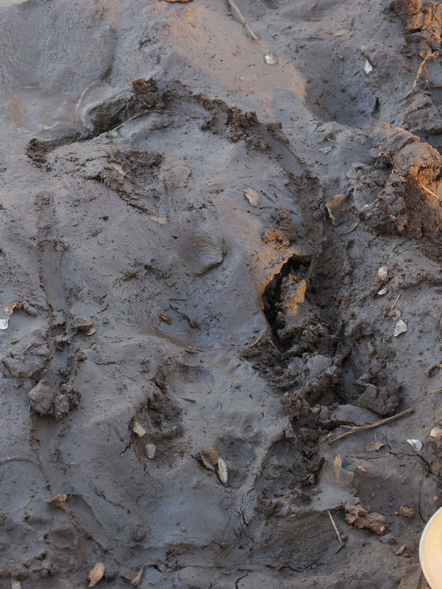 Their tracks are very distinctive: the shape of a bent banana, about 6 cm in length. We often found walking trails, as well as paired tracks where the hornbill had taken off.
