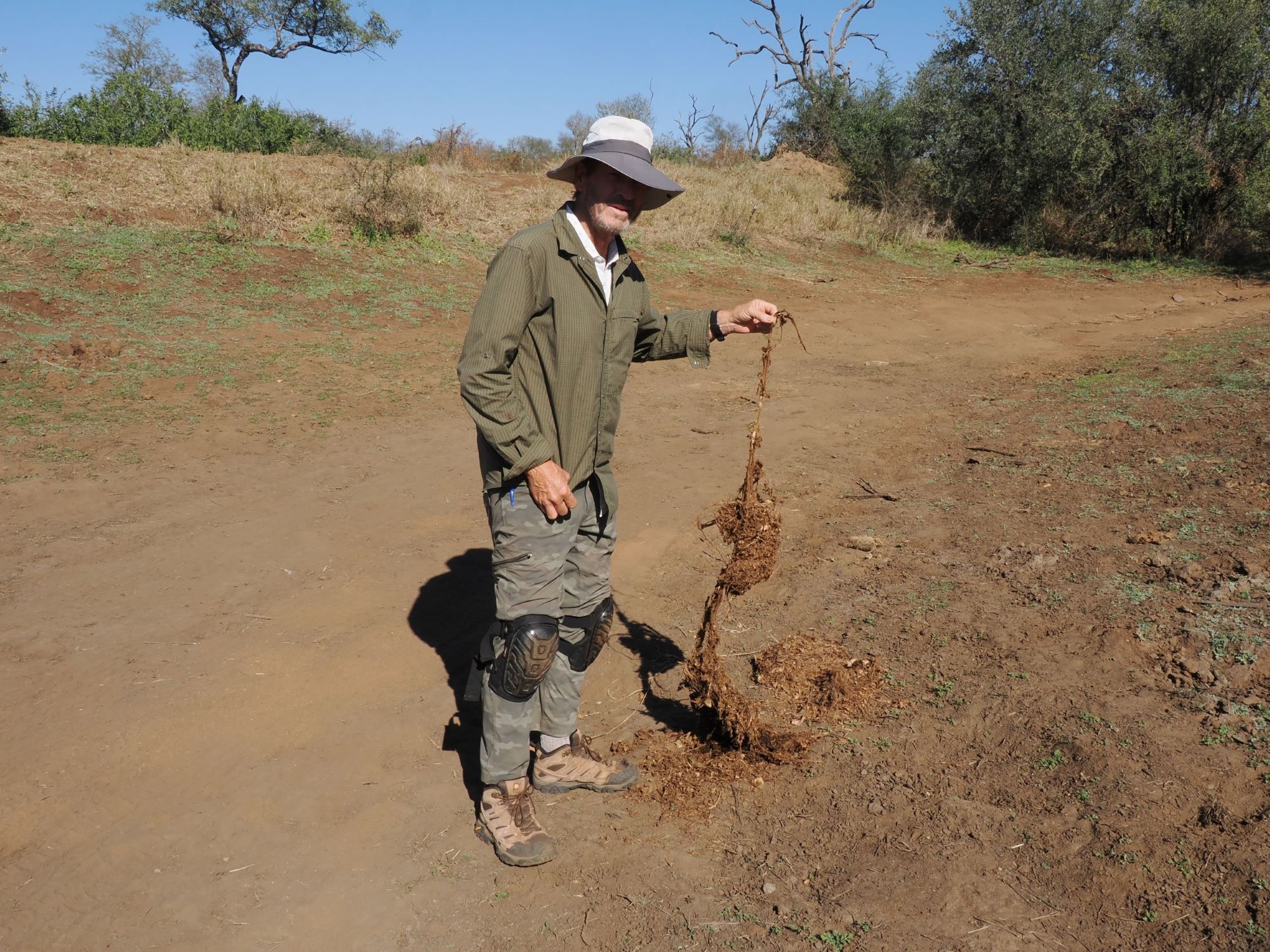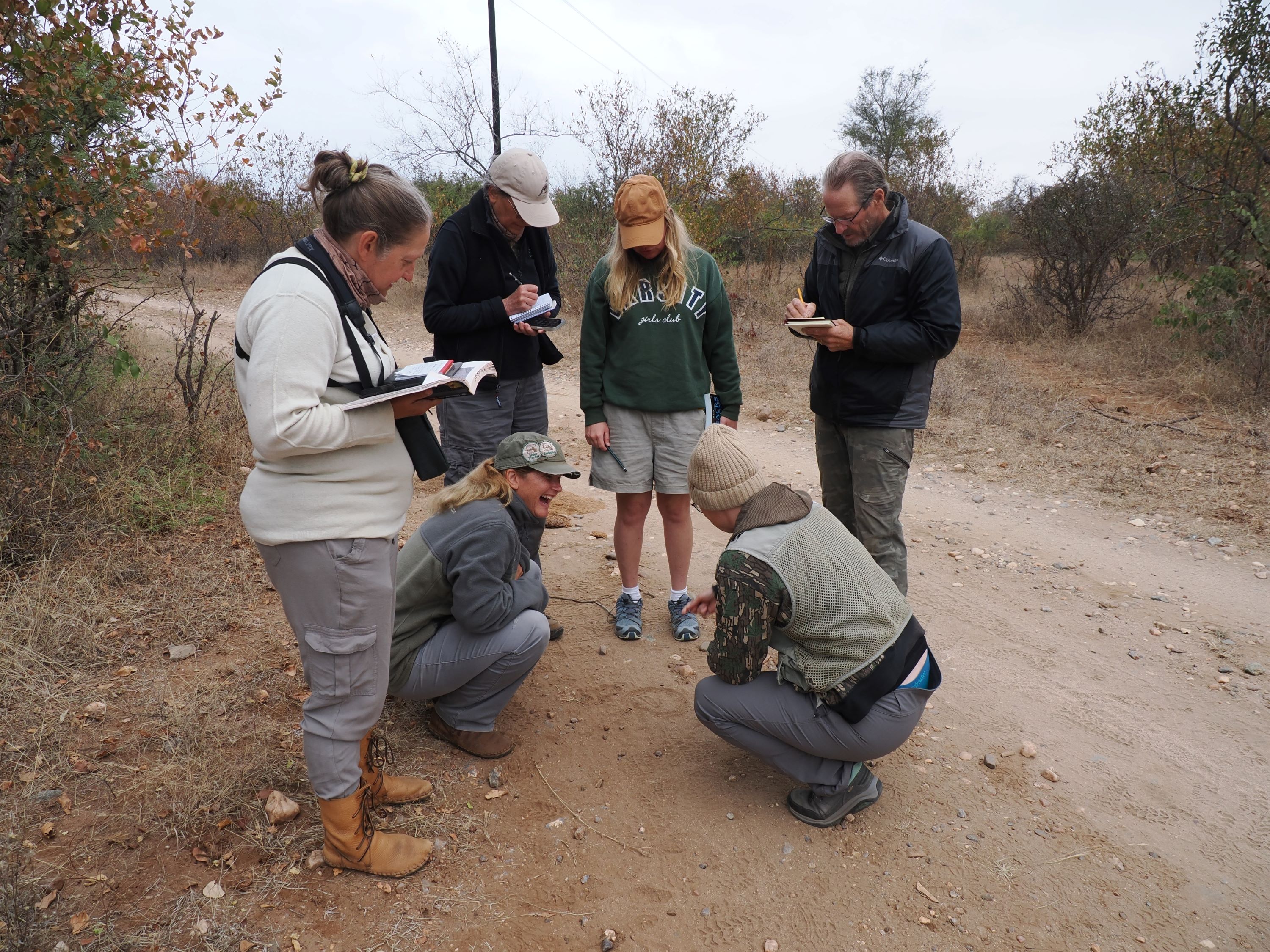 During one game drive, our tracking crew noticed a Southern yellow-billed hornbill hopping through the brush, snatching insects and moving at a faster pace than I’d seen around our campfire area. Ahead of the hornbill, we could see sleek gray bodies darting through the brush: a troop of dwarf mongoose! Kersey, our guide and tracking teacher, explained the symbiotic connection. Hornbills will often associate with dwarf mongoose troops, waiting for them each dawn at the entrance to their termite mound burrow. As the mongoose forage across the land, they disrupt insects with their passing — creating opportunistic foraging for the following hornbill. In return, the hornbill will alarm when an aerial predator appears, allowing the mongoose to quickly seek cover.
